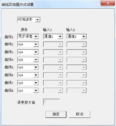 7) 设置曲线1类型为同步误差,输入1和输入2分别为通道1和通道2,如下图: