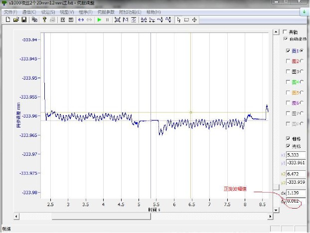 图1及图2中出现的正旋波为Z轴电机特性,与电机的极对数相关,电机每转一圈产生极对数个正旋波,该正旋波的幅值也可通过加大速度比例增益减小。