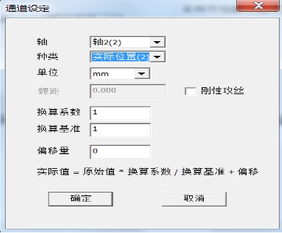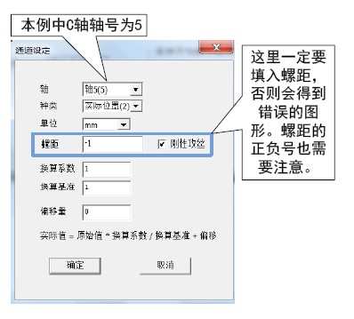 4) 增加C轴的实际位置采样为通道2,注意填入螺距。