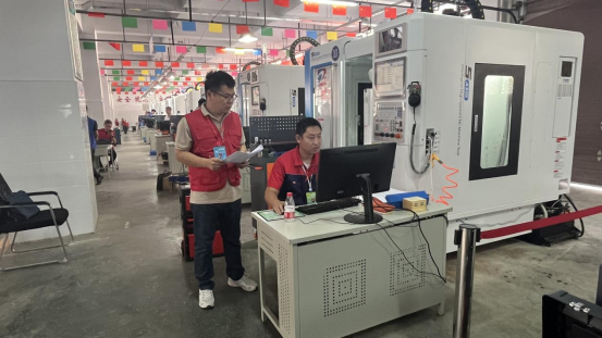 其中,“多工序数控机床操作调整工”选择的是华中数控设备五轴机床,展现选手上机操作水平,通过实操试题采用现场操作的方式,在规定时间内完成赛件的加工、装配等任务。