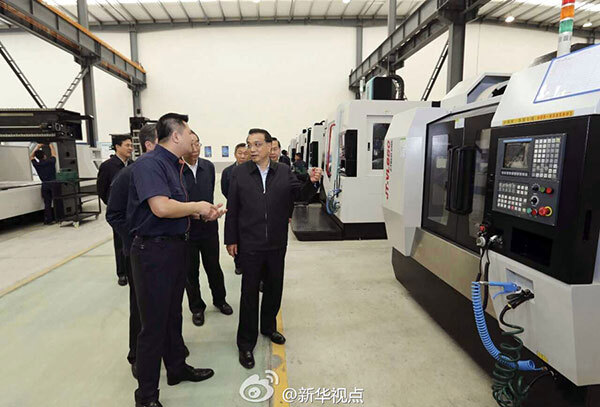 李克强总理视察嘉泰配置华中数控8型高档数控系统的钻攻中心车间