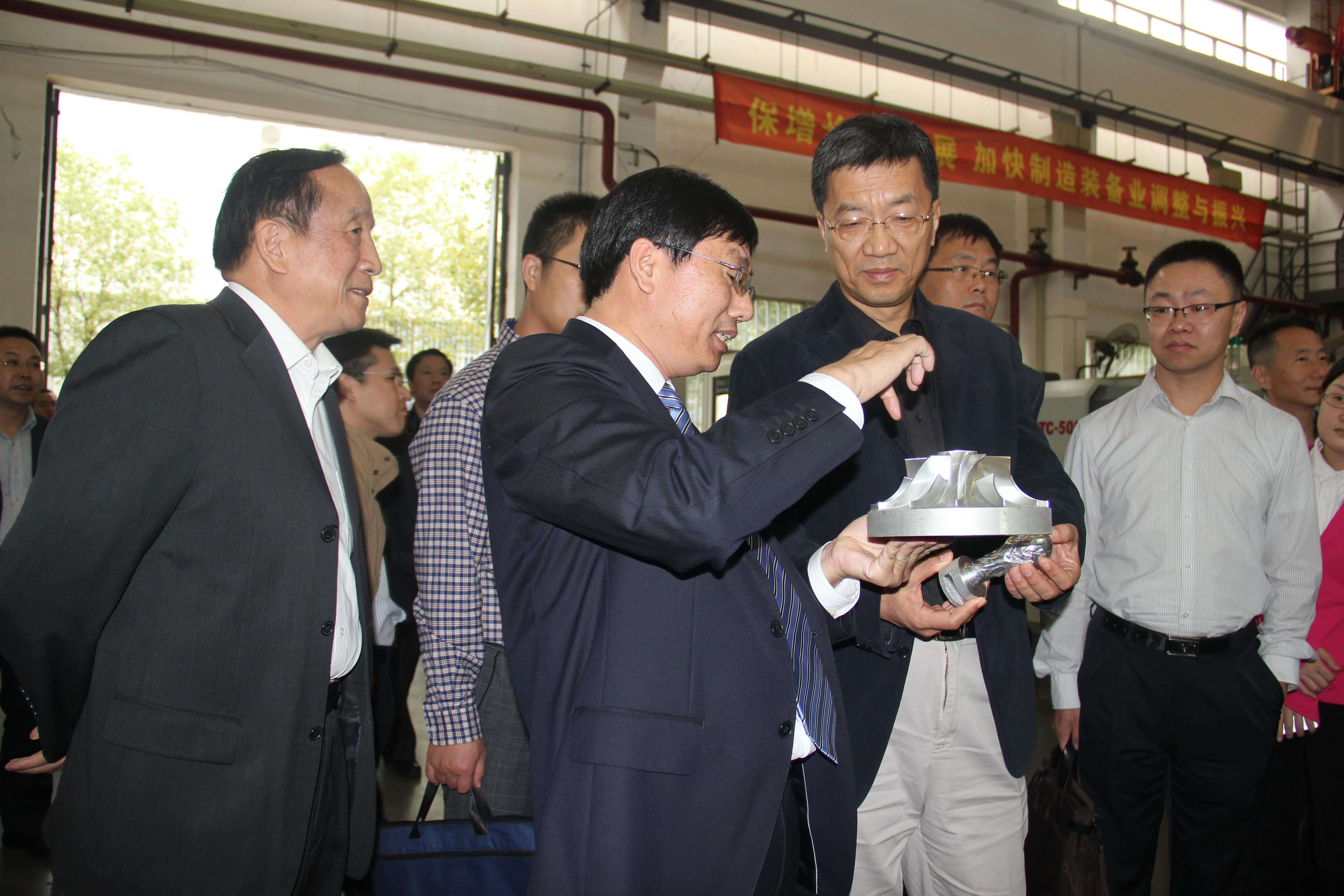 28日下午,工信部怀进鹏副部长、武汉市政府万勇市长等同志率调研组抵达华中数控,公司副总裁王群、蒋荣良、叶建国等陪同调研,向怀部长详细汇报了“中国制造2025”湖北落实情况、公司近年发展现状和承担国家重大专项情况,怀部长对公司今年来取得的技术突破表示肯定,并与王群、蒋荣良、叶建国等同志亲切交流,在智能制造和工业4.0进行了热烈探讨。