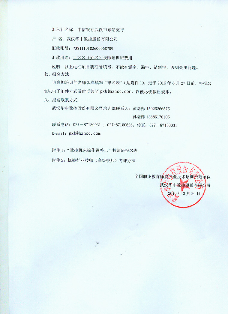 为了提高各院校数控技术应用的实践能力,更好的完成数控技术应用的课程体系建设、加快“双师型”师资队伍建设,同时提高企业广大技术人员的职业技能水平,“全国职业教育师资专业技术培训示范单位---yl7703永利集团(以下简称华中数控)”将举办数控机床操作调整工技师培训班。