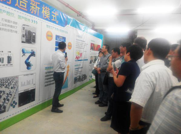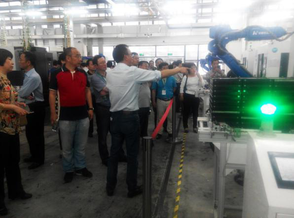 4月26日上午,参会代表一行实地参观考察华中数控承担建设的国家首个3C智能制造示范工厂以及松山湖大连机床智能制造展示中心。华中数控熊清平副总裁重点为大家详细介绍了华中数控与东莞劲胜共建的3C智能制造示范工厂,此项目智能设备层由180台高速钻攻中心(配置华中8型高速钻攻中心数控系统),72台华数机器人,25台RGV和15台AGV小车构成,集成华中数控云服务平台,组成完整的移动终端配件智能制造典范工厂,充分体现了“三国、五化、一核心”的智能制造战略思想。4月26日下午,与会代表一行参加了华中数控智能制造人才培养研讨会,现场交流了智能制造相关技术、华中数控在智能制造人才培养方面所开展的教材编写、教学资源开发、策划举办行业大赛以及华中数控与职业院校在全国建立智能制造公共实训平台示范点的工作情况。