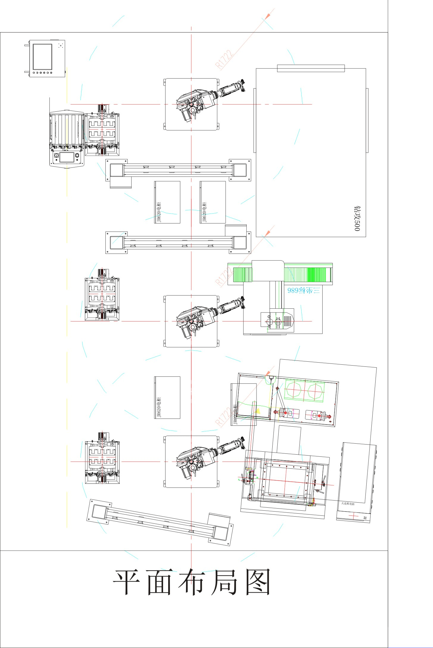 模具智能制造自动化生产线:1台钻攻中心、一台火花机、配3台华数机器人,同时配一台三坐标测量仪、一台AGV小车,组成一条微型模具智能制造自动化生产线。