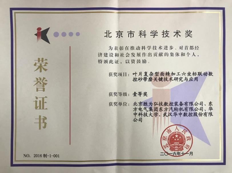 为表彰在推动科学技术进步,对首都经济建设和社会发展作出贡献的社会集体和个人,2017年4月26日,北京市2016年度科学技术奖励大会在北京会议中心隆重举行。华中数控以“叶片复杂型面精加工六坐标联动数控砂带磨关键技术研究与应用”项目荣获科学技术一等奖。