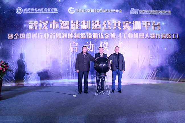 2月1日,武汉市智能制造公共实训平台暨全国机械行业首期智能制造培训认定班(工业机器人操作调整工)启动仪式在武汉软件工程职业学院隆重举行。