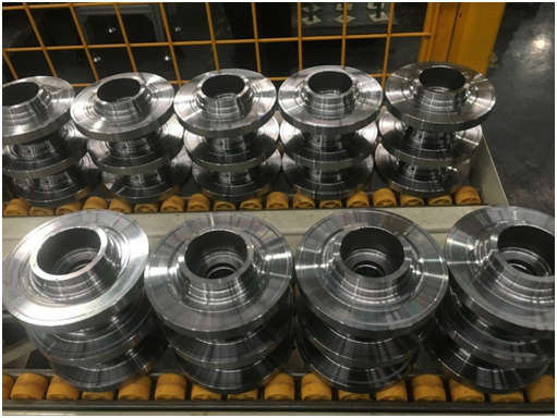 轮毂加工单元生产线由2条前轮毂法兰智能产线、1条轮毂单元外法兰盘热前加工智能产线、1条轮毂单元外法兰盘热后智能产线、1条轮毂单元外法兰智能磨超线、1条轮毂单元智能检测装配线组成。