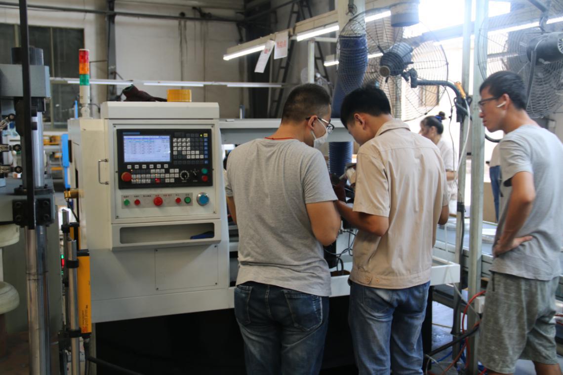 在三禾厨具的生产车间,除了一排又一排各式各样的锅具外,更吸引小编的是在锅具产线上站着的那些身穿蓝衣的“神秘侠客”,他们矗立在一台台机床之间,手臂灵活的来回抓取一件一件工件,面不改色,一丝不苟!就像武侠电影中立于阵前的侠客!