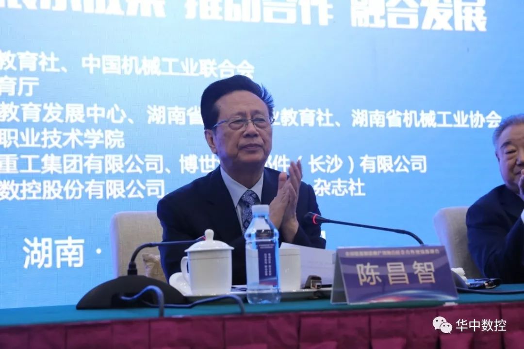 会议现场,十二届全国人大常委会副委员长、中华职业教育社理事长陈昌智表示职业教育必须创新,要纵向贯通,通过深化产教融合、校企合作,建立完善的人才培养体系,推进校企利益、制度、文化、技术、资源、人员的融合,为建设制造业强国培养更多更好的能工巧匠。