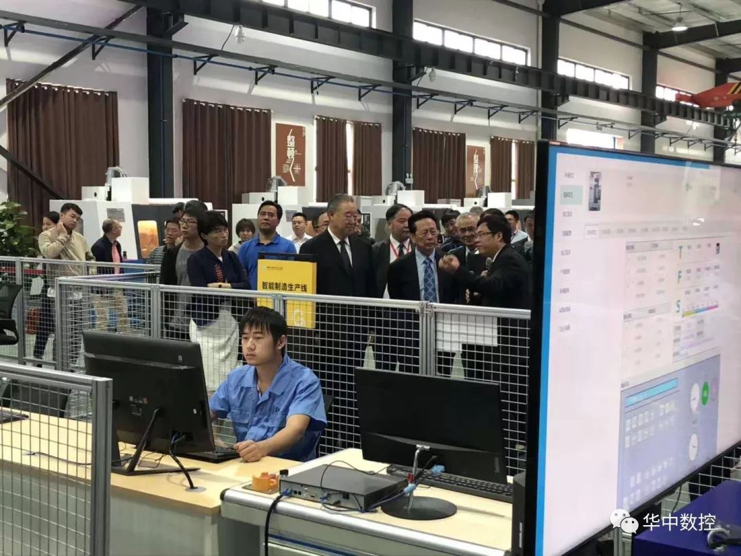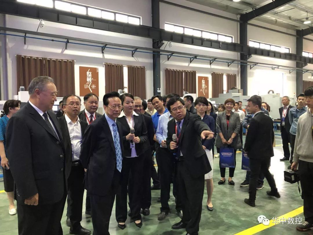 会议期间十二届全国人大常委会副委员长、中华职业教育社理事长陈昌智、中国机械工业联合会会长王瑞详等领导和专家参观考察了华中数控与湖南工业职业技术学院共建智能制造实训中心。华中数控董事长陈吉红进行了热情的接待及介绍,该中心包括:智能产线加工区、多轴加工区、高速高精加工区,智能制造生产线具有实际生产制造能力,在湖南省高校属于首家,在华中地区的高校中也属于规模最大。