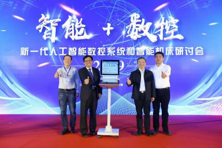 与会嘉宾上台共同见证新一代人工智能智能数控系统发布