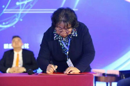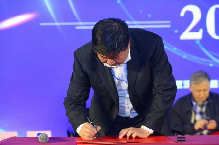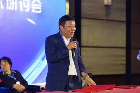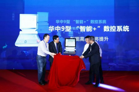 嘉宾演讲结束后,随着华中9型视频介绍,北京航空航天大学教授刘强、武汉华中数控有限公司董事长陈吉红、江西佳时特数控技术有限公司董事长 刘华、宝鸡机床集团副总经理、总工程师苏忠堂一起为新一代人工智能智能数控系统揭幕,现场响起热烈的掌声。