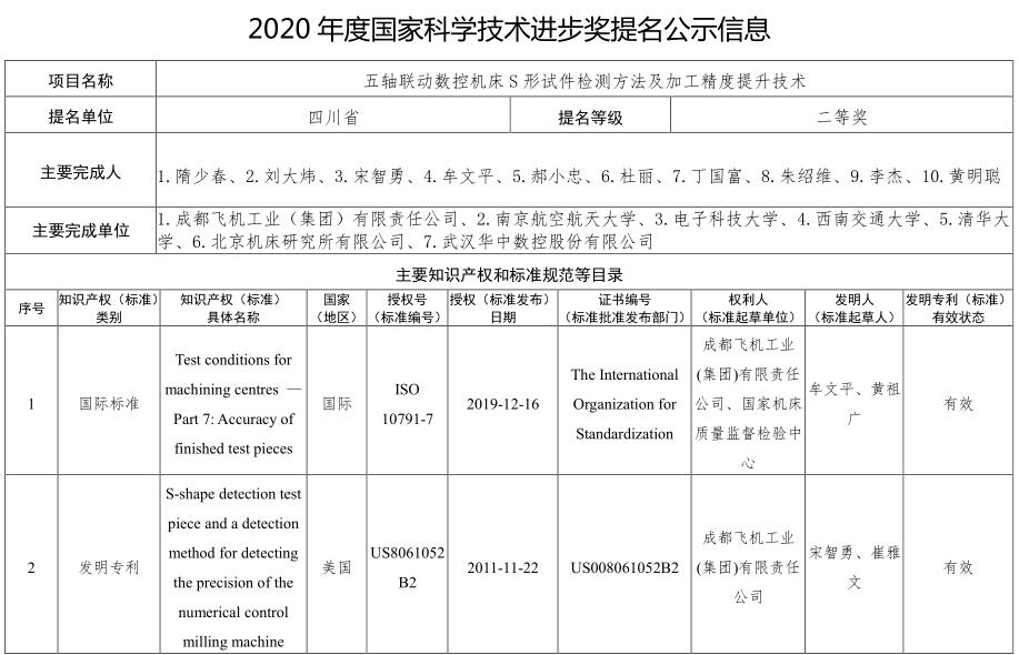 关于“面向复杂数控装备的监测评估关键技术及标准体系”项目申报2020年度国家科技进步...