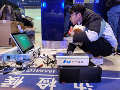 华中数控工程师在北京西客站国际列车出入境联检大厅现场安装设备