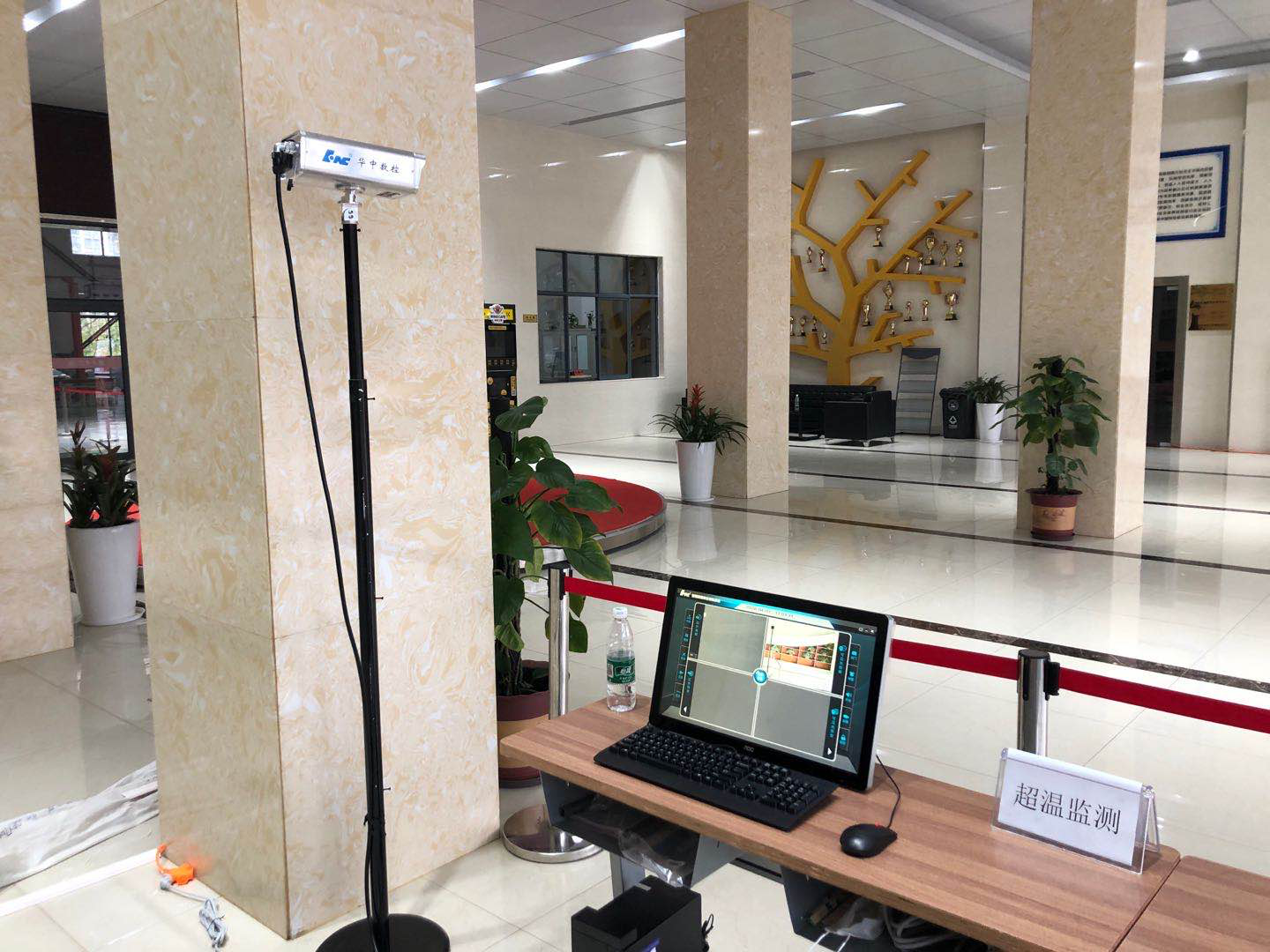 两台红外智能体温检测系统分别安装在学校大门和汽车大楼入口处。在学校大门警卫室处,学校还专门设置了专用测温通道,保证测温秩序,提高测温准确率。两台智能红外体温检测系统将为湖南工业职业技术学院的教职员工、全体师生及进出人员进行体温检测,保证广大师生的生命安全和身体健康。