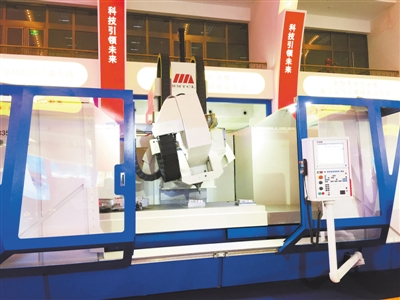 国家“十二五”科技创新成就展上展出的大型五轴联动加工中心及配置的“华中8型”高性能数控系统
