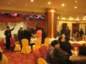 晚上,公司全体员工以及产业集团领导来到九龙酒店吃了一顿热热闹闹的团年饭,大家纷纷举杯,相互送出新年的祝福。