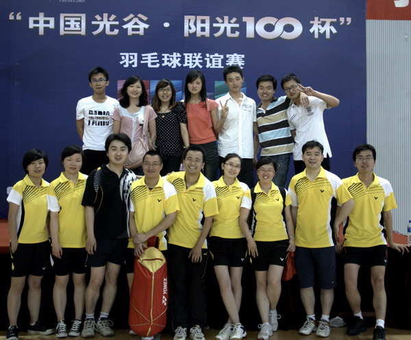 【大】 【中】 【小】为丰富各企业职工业余文化生活,东湖高新工会于5月29、30日两天在武汉职业技术学院羽毛球馆举办了“中国光谷阳光100杯”职工羽毛球赛。我公司由男女共10人组队参加了本次比赛,经过两天的紧张、精彩的角逐,田晓翔进入前8强,涂济荣获男单项目的亚军,为公司争得了荣誉。比赛期间公司工会主席和许多员工前去为参赛选手加油助威。